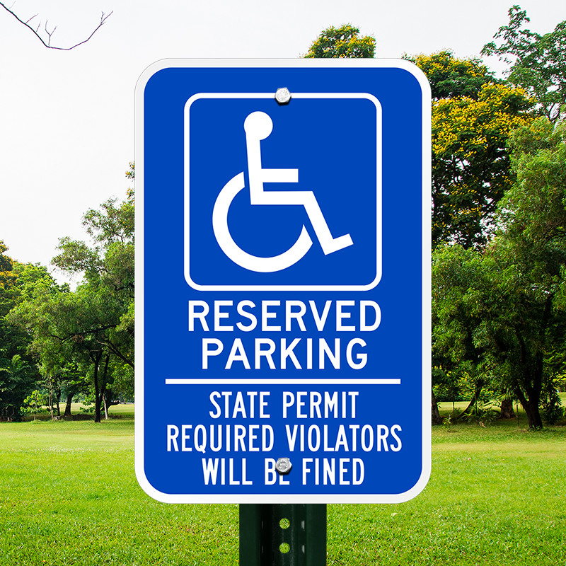 - Reflective aluminum material is visible at night. Handicapped parking signs use 3M's reflective engineer grade film.