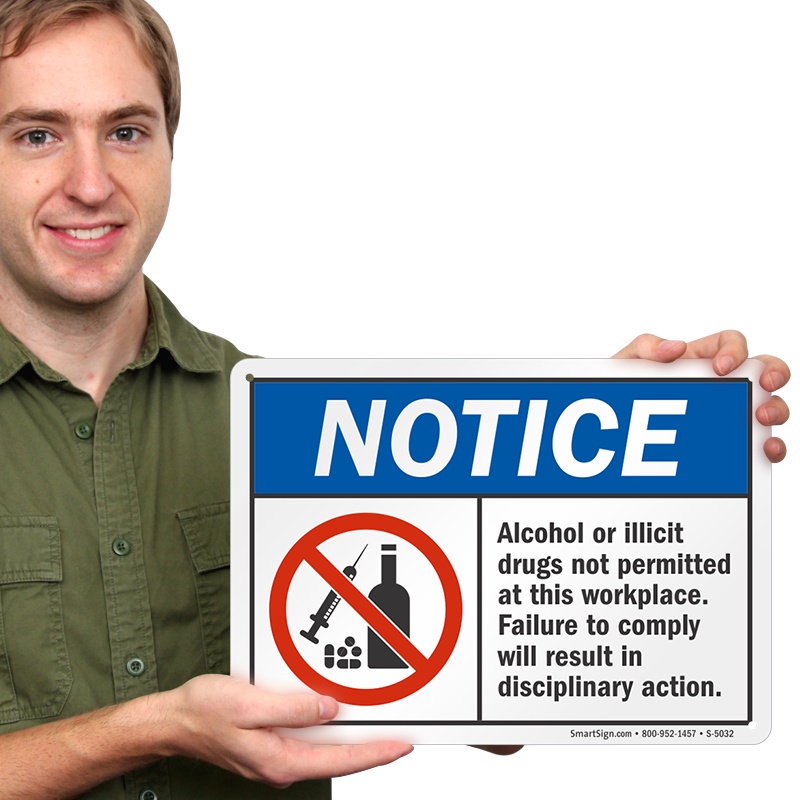 This ANSI Notice Sign will make sure that office decorum is maintained. Display this message and inform everyone that alcohol or illicit drugs are not permitted at the workplace and violation will lead to disciplinary action.