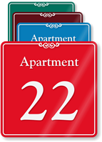 Post our designer Apartment Number ShowCase Wall signs and serially mark apartments in your large residential society. This one guides visitors to the location of Apartment 22. Highly durable sign lasts for several years both indoors and outside.