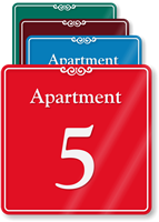 The best way to distinguish between different apartment blocks in your large residential society is to serially mark them with our Apartment Number ShowCase Wall signs. This designer sign marks Apartment 5. Available in a range of color options, as per your décor.