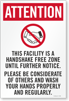 Let people know that handshaking is prohibited in the facility. Post our attention-grabbing sign and secure their support in stopping the spread.