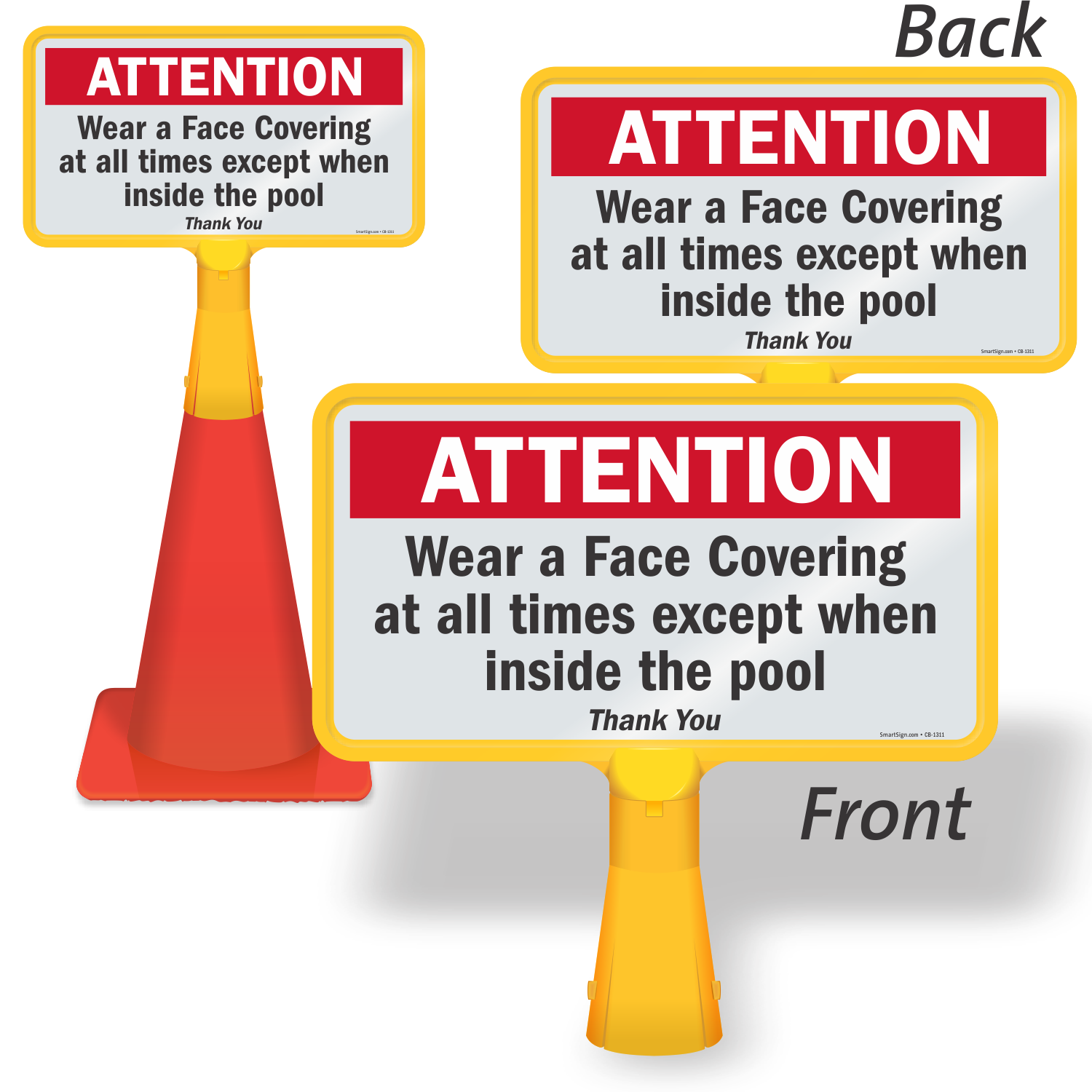 ConeBoss Sign: Attention - Wear A Face Covering At All Times Except When Inside The Pool, Thank You