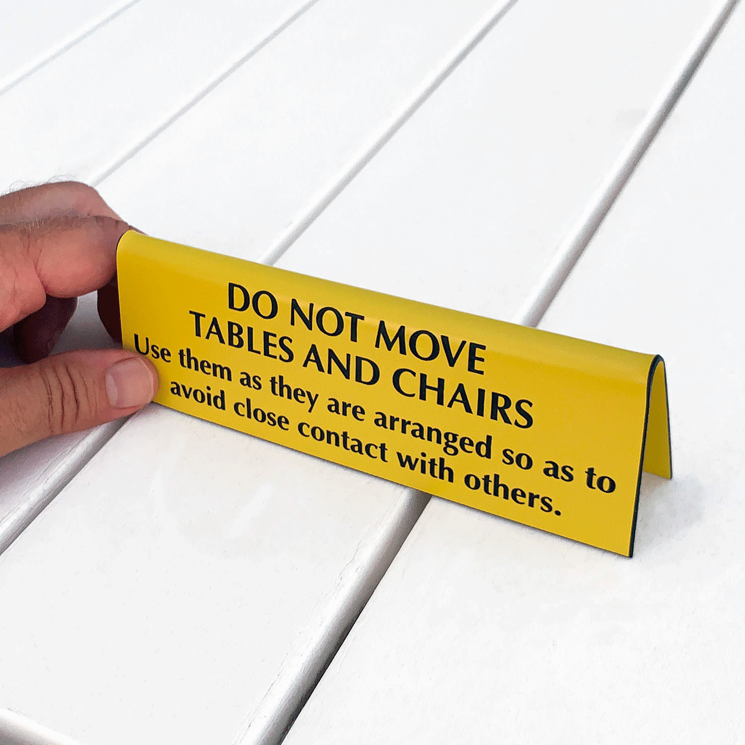 Human-to-human contact is the most common way that an infected person can infect others. Prevent close contact by warning people not to move the seating arrangement.