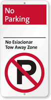 This "No Esiacionar, Tow Away Zone" sign is understood by both Spanish and English speakers. It is an ideal sign for Spanish speaking communities!