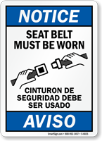 This Bilingual OSHA Notice Sign acts as an effective reminder that Seat Belt Must Be Worn while in the vehicle.