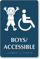Add some fun to your restroom signage by opting for this peppy yet ADA compliant Boys/Accessible Restroom Sign.