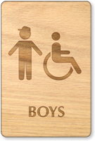 Wooden Restroom Sign: Boys (With Accessible Symbol) (SE-6994)