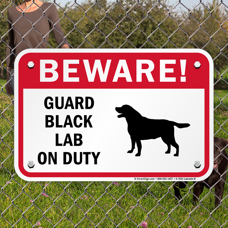 Beware Of Dog Breed Sign: Guard Black Lab On Duty Sign (K-7631-LABRADOR-B)