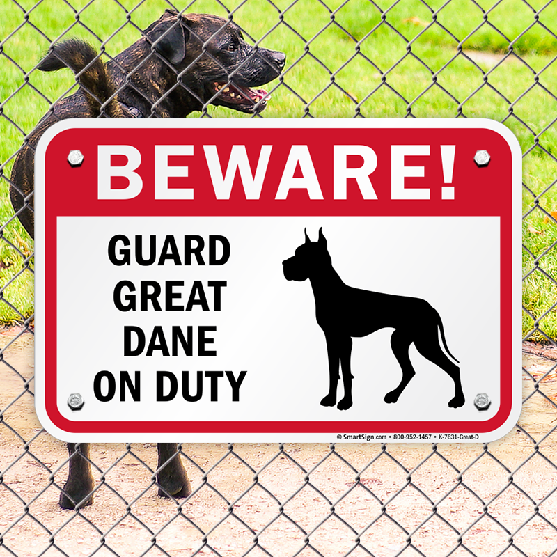 Beware Of Dog Breed Sign: Guard Great Dane On Duty Sign (K-7631-GREAT-D)