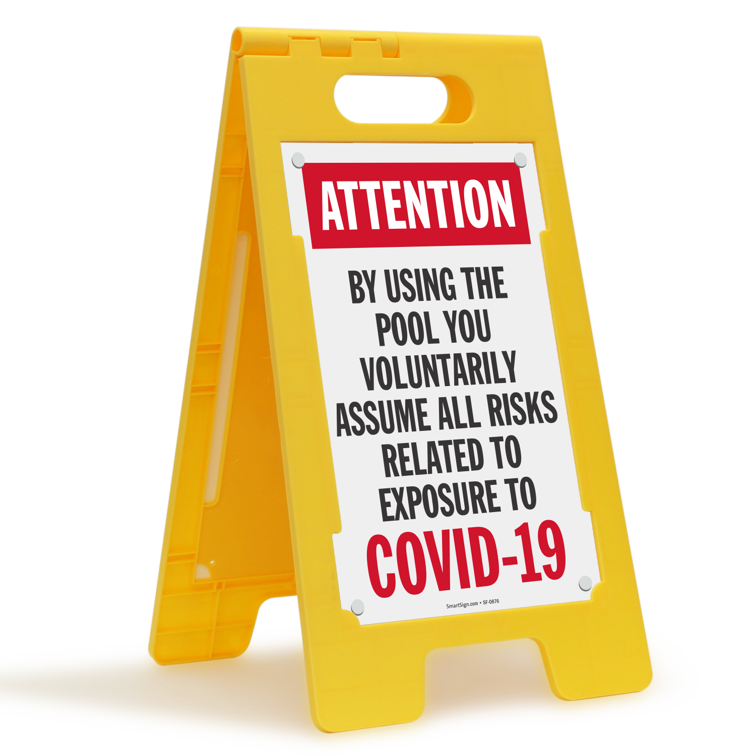 FloorBoss Standing Floor Sign: Attention - By Using The Pool You Voluntarily Assume All Risks Related To Exposure