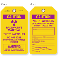 Radioactive Material Tags are printed on two-sides (different text), feature the universally recognized trefoil symbol, has proper fields to write the details of the material and is sturdy enough to withstand industrial wear and tear.
