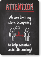 Take the pleasingly polite route to convey your limited store occupancy policy with our chalkboard-style sign.