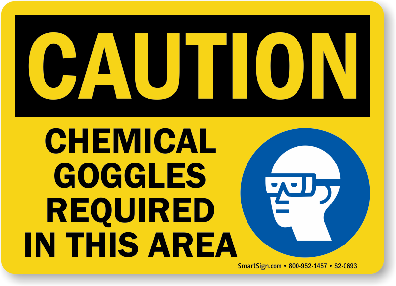 OSHA Caution Sign: Chemical Goggles Required In This Area (With Graphic)