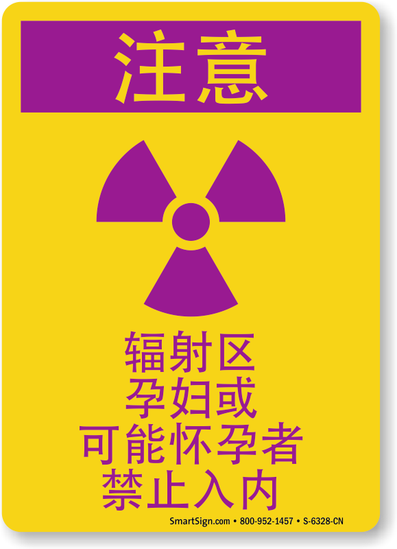 Mark the Radiation Area for female workers/visitors in your facility who speak Chinese. Display this Chinese OSHA Caution sign and instruct them against entering if they're pregnant.
