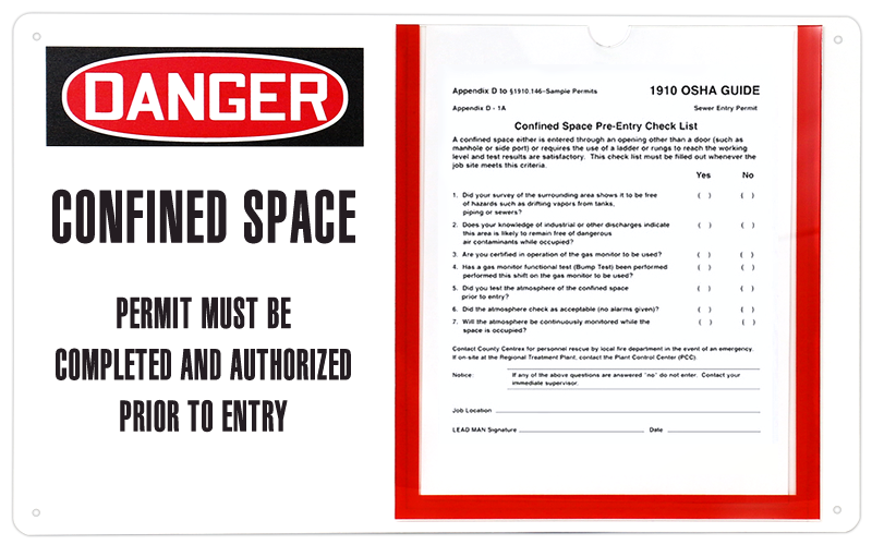 In an industrial setting there can be many areas that have hazardous situations. Make sure to have these locations marked clearly with our Danger Permit Holder signs. The sign comes with a convenient area featuring an acrylic pocket for additional information that may need to be filled out.