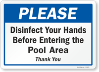 Pool Rules Sign: Please Disinfect Your Hands Before Entering The Pool Area, Thank You (S2-4479)