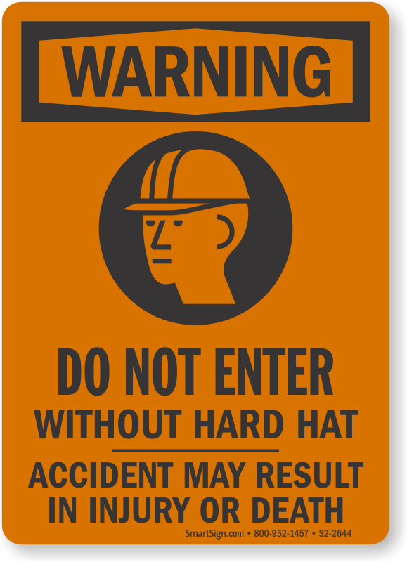 OSHA Warning Sign: Do Not Enter Without Hard Hat, Accident May Result In Injury Or Death