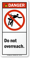 As a responsible facility owner, play your part by applying this ANSI Danger label and instruct workers to not overreach while climbing the ladder. A relevant graphic makes the ladder safety message instantly comprehensible.