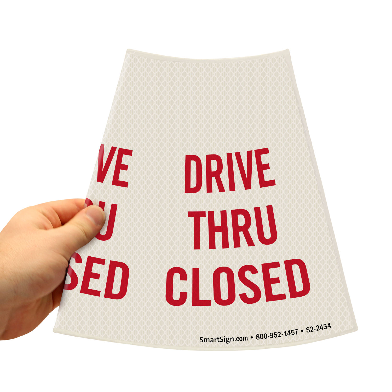 Here's a great solution for temporary signage. Message cone sleeve boasts of its space-saving design that folds neatly to occupy minimal storage space. Flexible vinyl sleeve slips over a regular traffic cone and can be taken off when not in use.
