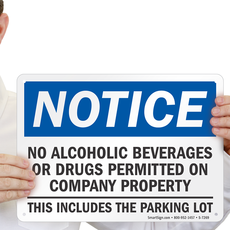 Notice No Drugs Or Alcohol Sign: No Alcoholic Beverages Or Drugs Permitted On Company Property This Includes The Parking Lot (S-7269)