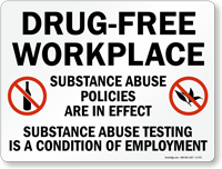 Drug Free Workplace Sign: Substance Abuse Policies Are In Effect, Substance Abuse Testing Is A Condition Of Employment (S-7173)