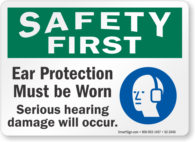 Safety First Sign: Ear Protection Must Be Worn, Serious Hearing Damage Will Occur