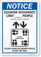 Convey the elevator occupancy limit with this write-on sign and also request people to practice social distancing while inside.