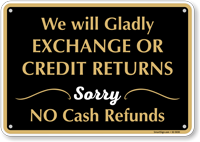 No Refund Sign: Exchange or Credit Returns, No Cash Refunds (S2-5030)