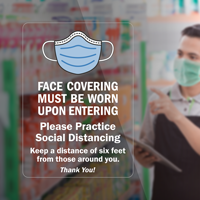 Ideal for stores, this window decal doesn't block the view through glass surface while conveying important safety message across.