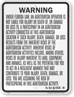 No more worrying about being sued by ill-intentioned visitors. Post this Florida Agritourism Liability Sign on your farms and ranches and enjoy the reduced liability protections given to landowners by law.