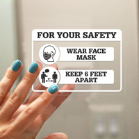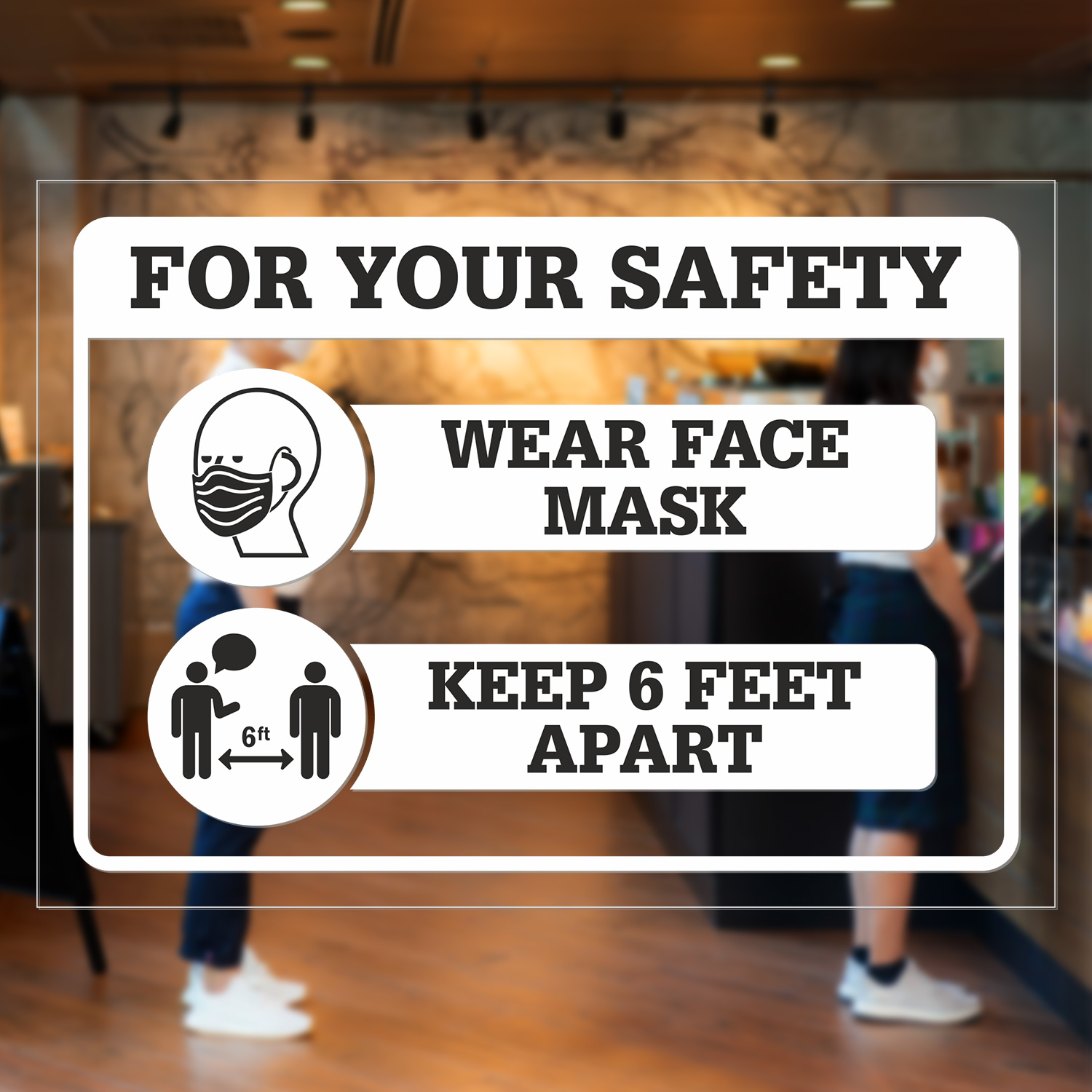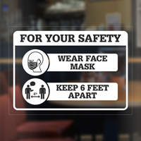 Social Distancing Window Decal: For Your Safety Wear Face Mask, Keep 6 Feet Apart (LB-4312)
