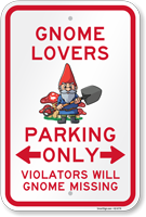 Tickle a funny bone with our 'Gnome Lovers Parking Only Sign' sign. Makes sure no one parks on your property.