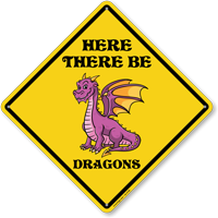 Funny Animal Signs: Here There Be Dragons Sign (K2-6756)