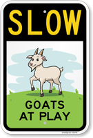 Protect goats and prevent vehicle drivers from speeding in the area. Use this bright sign with explicit graphics asking drivers to slow down in the wildlife crossing.