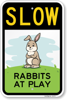 Protect rabbits and prevent vehicle drivers from speeding in the area. Use this bright sign with explicit graphics asking drivers to slow down in the wildlife crossing.