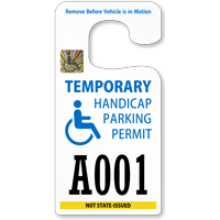 Don't let disabled drivers struggle with weeny hang tags. This Jumbo Handicap Parking Permit easily hangs and can be taken off the rear view mirror.