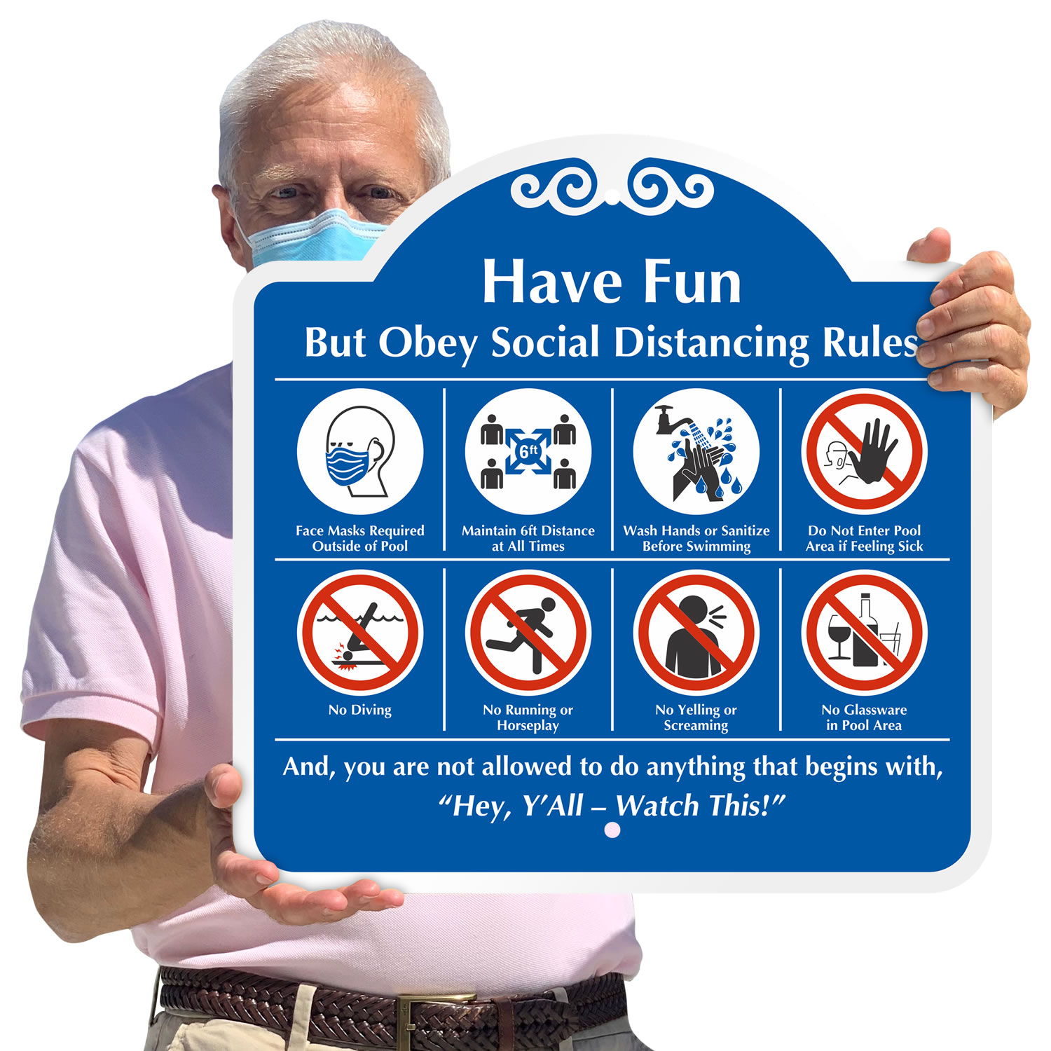 18 in. x 18 in. SignatureSign: Have Fun, But Obey Social Distancing Rules Designer Sign (K2-5691)
