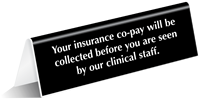 OfficePalâ„¢ Tabletop Tent Sign: Your Insurance Co-Pay Will Be Collected Before You Are Seen By Our Clinical Staff (SE-5641)