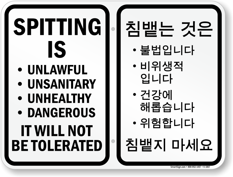 Inform people of the ill-effects of spitting and restrict them from doing so in the area. Use this Korean/English Bilingual No Spitting sign to announce your policies.
