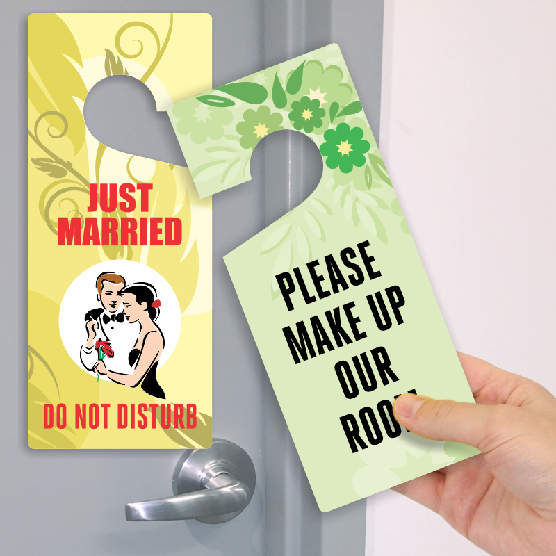 Let "Just Married" couples enjoy their privacy. This 2-Sided Door Hanger Tag helps give exact instructions to housekeeping staff and prevent unwanted interruptions.