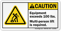 Mark heavy loads and equipment with this ANSI caution label to remind workers to use assistance while lifting.