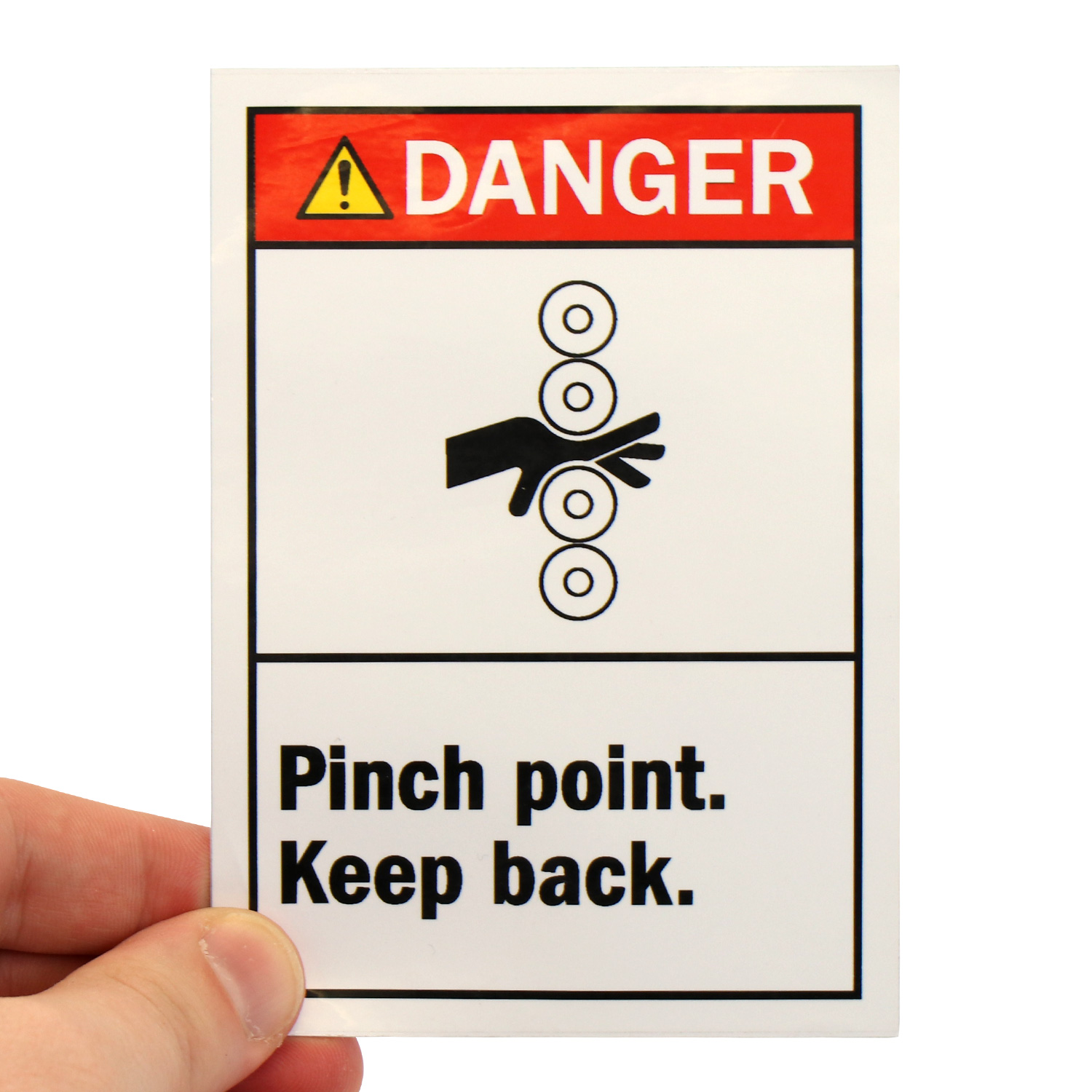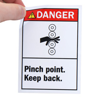5in. x 3.5in. Laminated Vinyl Label: Danger - Pinch Point Keep Back (ANSI Style) (L-0221-XV)