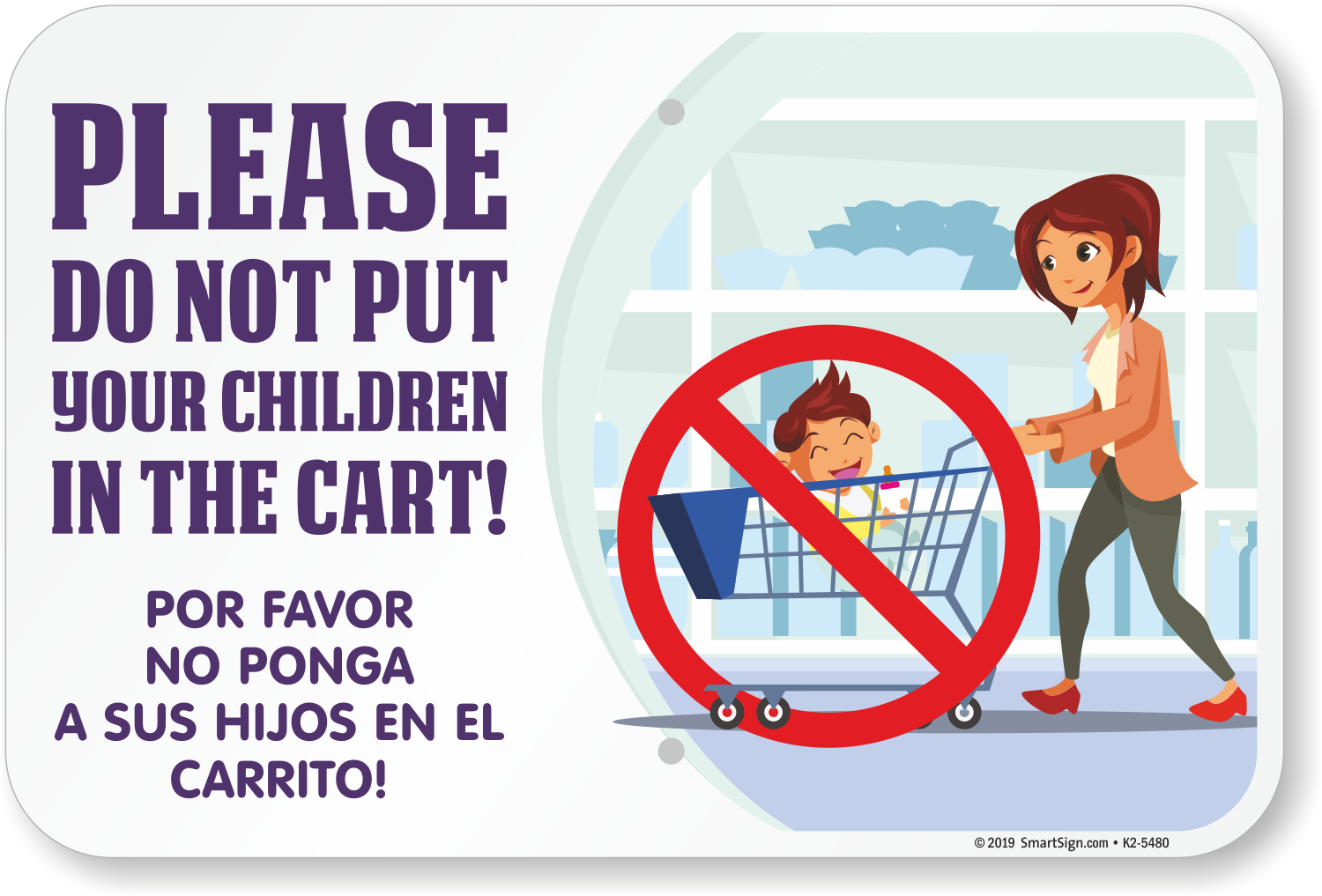 Make sure parents know to keep their children out of the shopping carts with this no children in cart sign.