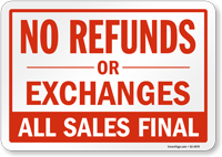 Retail Sign: No Refunds or Exchanges, All Sales Final (S2-4979)