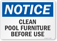 This Clean Pool Furniture Sign helps you keep your pool chairs, loungers, dining sets, etc. clean and sanitized before and after members use them.