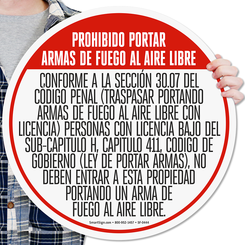 Put the most important notices right where everyone can see them. This SlipSafeâ„¢ Floor Sign comes with Texas Open Carry Regulations in Spanish and complies with Texas Penal Code Section 30.07.