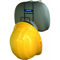 Hard hat rack slides over a seat in passenger vehicles or pick up trucks. Keeps your hard hat close by yet still out of the way.