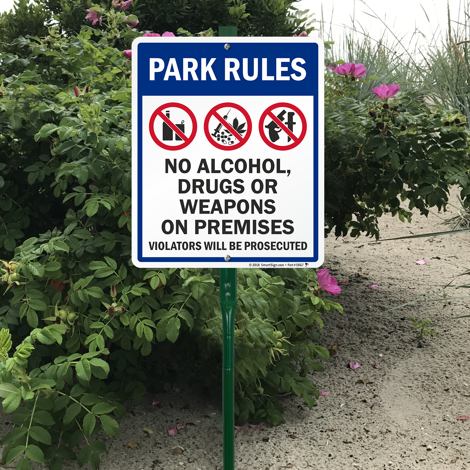 LawnBoss® Sign & Stake Kit: Park Rules - No Alcohol, Drugs Or Weapons On Premises. Violators Will Be Prosecuted K2-5531