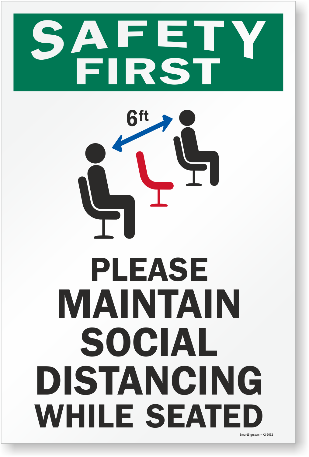 Social Distancing Sign Panel: Safety First - Please Maintain Social Distancing While Seated