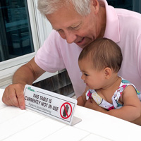 ShowCaseâ„¢ Desk Sign: Please This Table Is Currently Not In Use, Thanks For Social Distancing (SE-7451)